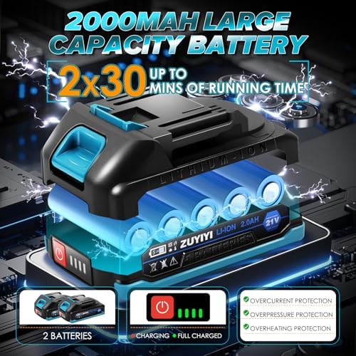 ZUYIYI 3\/8" Cordless Electric Ratchet Wrench Set, 66Ft-lbs 6.3" Extended Long Neck Ratchet Wrench, 400RPM 21V Power Torque Ratchets, 2x 2.0Ah Batteries & Charger, 6 Sockets, 1\/4" Ada
