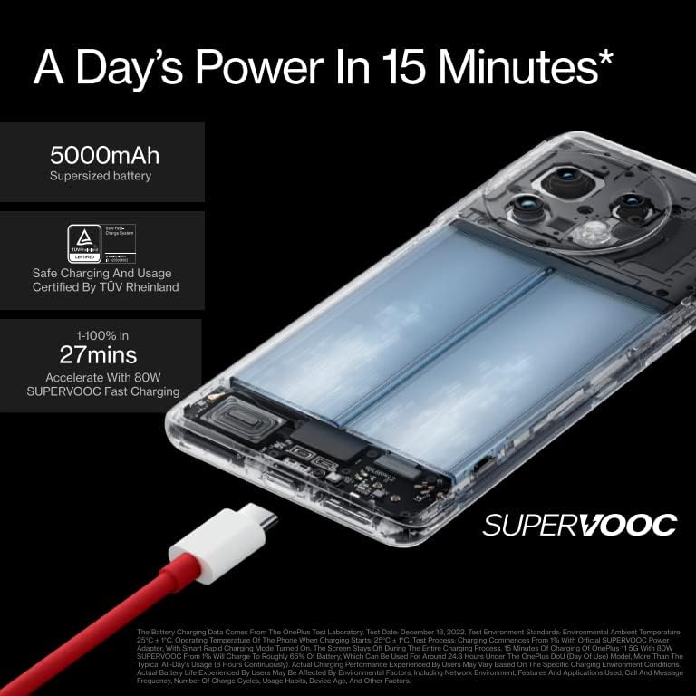 OnePlus 11 5G 16GB RAM+256GB Dual-SIM Titan Black US Factory Unlocked Android Smartphone 5000 mAh battery 80W Fast charging Hasselblad Camera 120Hz Fluid Display 4nm Processor