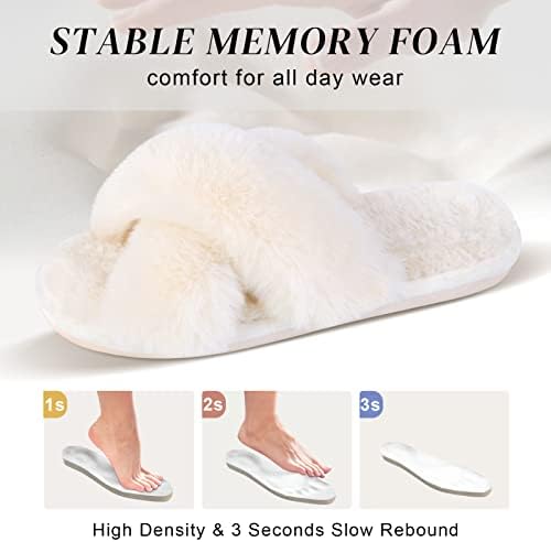 Parlovable Women's Plush Slippers Comfortable Cross Band Home Shoes Memory foam Open Toe Indoor Women's Gift