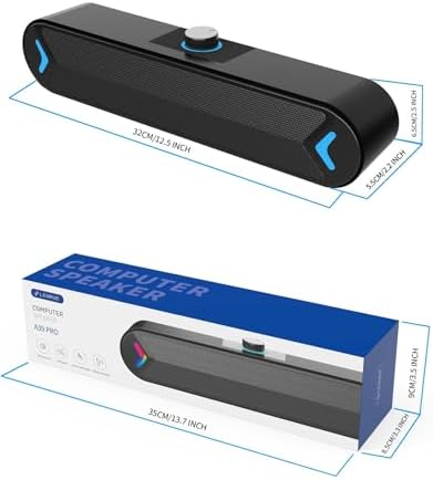 LENRUE Computer Speakers,Wired USB-Powered Sound-bar with 10W Stereo Sound for PC Desktop,Plug-n-Play (A39PRO \/Black)