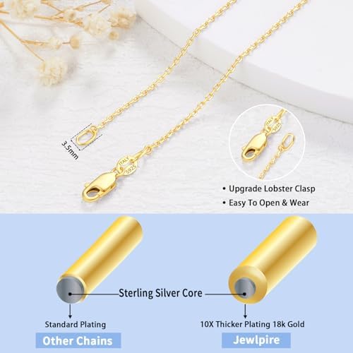 Jewlpire Solid 18k Gold Over 925 Sterling Silver Chain Necklace for Women, 1.2mm Cable Chain Necklace Thin & Dainty & Sturdy Women's Chain Necklaces 14\/16\/17\/18\/20\/22\/24 Inch