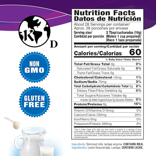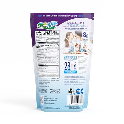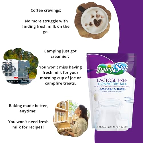 DairySky Lactose Free Milk Powder 16 Oz - Non GMO Fat Free Powdered Milk for Baking & Coffee, Kosher with Protein & Calcium, Great Substitute for Liquid Milk, RBST Hormone - Free - 1 Pack