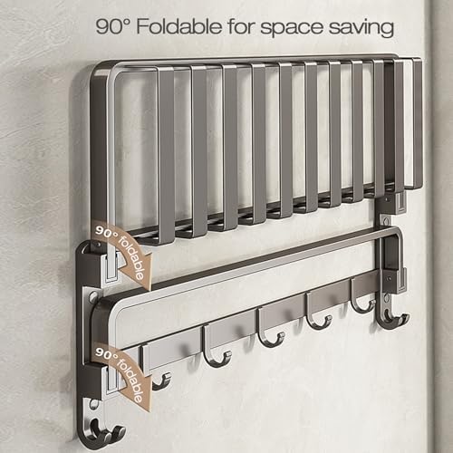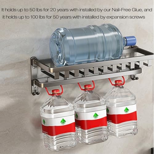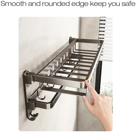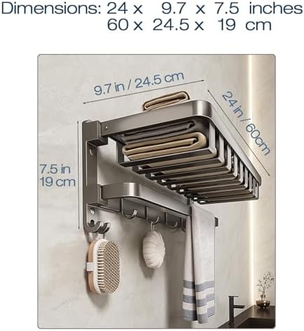 Lancher 24 inches Bathroom Shelf Tower Rack (No Drilling) Shower Rack with Towel Bar with Tower hooks Shower Caddy - Grey