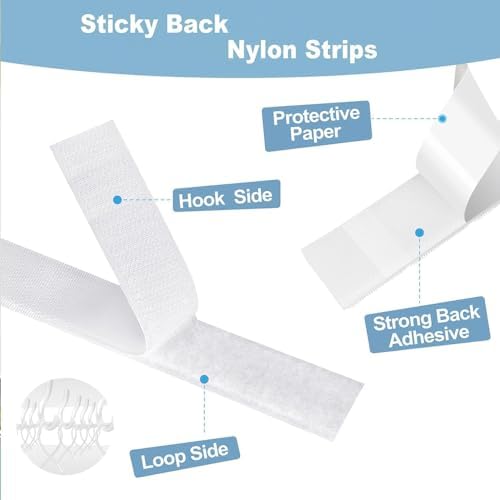 Strips with Adhesive Heavy Duty, 26.5Ft x1.2inch Tape, Nylon Sticky Back Fastener Roll,DIY Industrial Strength Self Adhesive Strips for Office,Classroom,Car, Couch Cushions-White