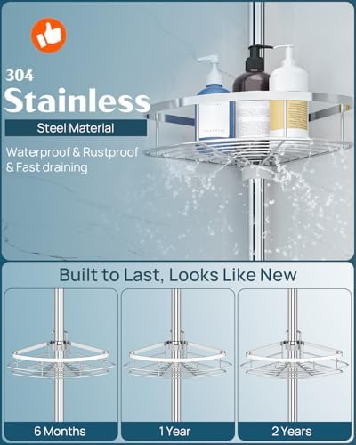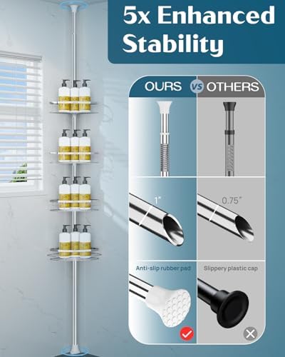 SEIRIONE Rustproof Shower Corner Caddy Organizer for Bathroom, 4 Adjustable Shelves with Tension Pole, for Bathtub Shampoo Accessories Storage Holder, 34 to 116 Inch Height