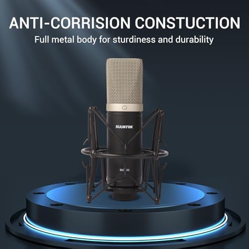 SUUNTOK Condenser Microphone XLR, Large Diaphgram Professional Recording Cardioid Microphone Kit w\/Shock Mount, for Studio, Live Streaming, Podcasting, Voice-Over, You-Tube (Silver)