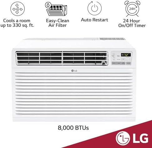 LG 7,800 BTU Through the Wall Air Conditioner, 115V, AC Wall Unit for Rooms up to 330 Sq. Ft., Perfect for Bedroom or Office, Wall Mounted AC Unit with Remote and 3 Cool & Fan Speeds, White