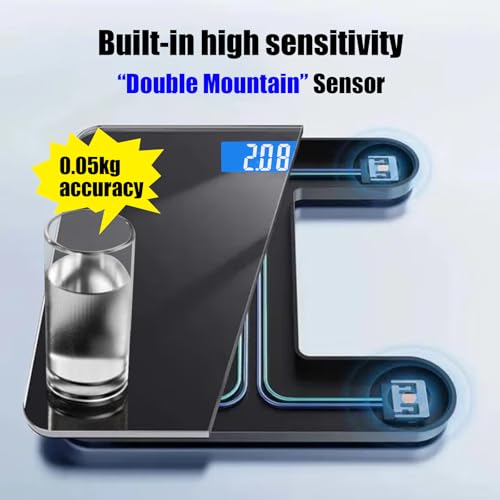 Smart Scale for Body Weight Digital Bathroom Scale with Blue LCD Backlight Display Highly Accurate Body Weight Scale Body Fat Scale Temperature Indication Corner Design 400lbs (Black)