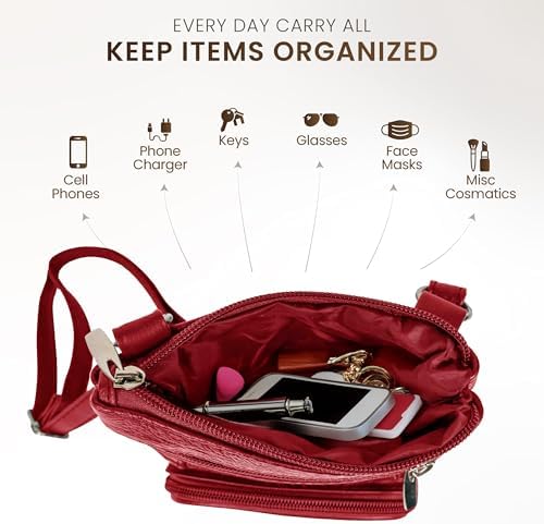 Krediz leather Crossbody Purses for Women, Multi Pocket Crossbody Purse with Adjustable Strap, Soft & Durable Leather Purse