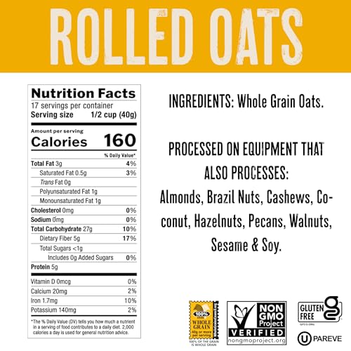 Uncle Crumbles Gluten Free Rolled Oats, Kosher, Non-GMO Project Verified, 24oz Resealable Bag (Pack of 1)
