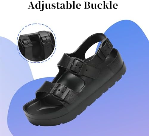 SOSOWHLTE Women's Platform Sandals with Arch Support - 3 Adjustable Straps Summer Beach Sandals, Lightweight & Slip-Resistant