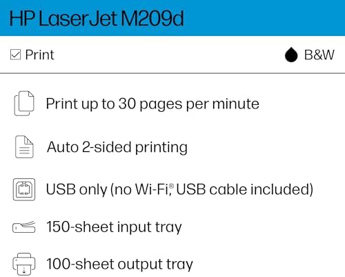 HP LaserJet M209d Laser Printer, Black and White, Automatic Duplex, USB Connection Only (Cable Included), Ideal in Home Office (8J9L0F)