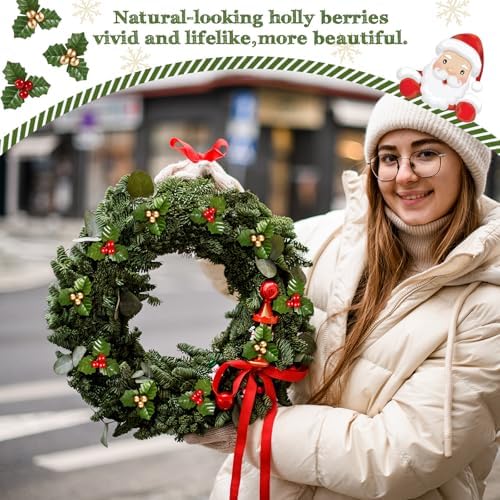 Canlierr 50 Pieces Christmas Holly Berries for Crafts Faux Berries Flowers and Holly Leaves Christmas Wreath Fillers for Vase Fillers Floating Candle Table Centerpiece(Red, Gold)