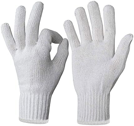 Evridwear Cotton Polyester String Knit Shell Safety Protection Work Gloves for Painter Mechanic Industrial Warehouse Gardening Construction Men & Women 12 Pairs, no Dots, Large Size