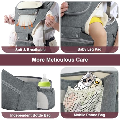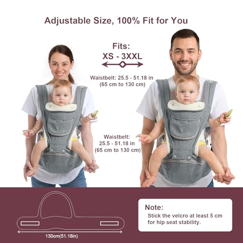 Baby Carrier, 6-in-1 Newborn to Toddler Carrier(7-50lbs), Front & Back Carrier with Detachable Hip Seat, Soft & Adjustable, All Seasons, Ideal for Mom & Dad, Perfect for Shopping & Tra