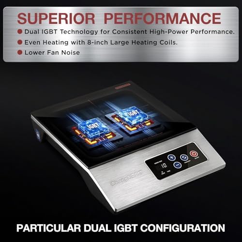 ChangBERT 1800W Commercial Grade Induction Cooktop, NSF Certified Portable Large 8" Heating Coil, 12" Heat Resistant Cooking Surface Premium Stainless Steel Pro Chef Professional Burner Hot Pl