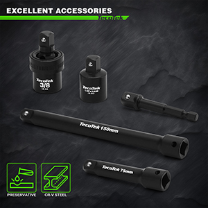 TecoTek 3\/8" Drive Impact Socket Set, 49-Piece SAE (5\/16"-3\/4") and Metric (8mm-22mm), 6 Point, Cr-V, Extension Bars, 1\/2" F to 3\/8" M Reducer, Universal Joint and Power Drill