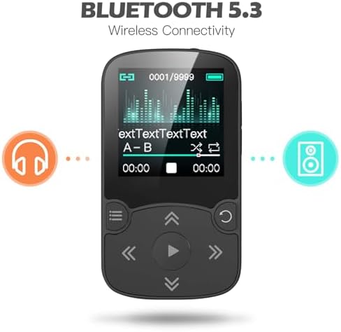 AGPTEK 64GB MP3 Player with Clip, A65 Bluetooth 5.3 Lossless Sound with FM Radio, Voice Recorder for Sport Running, Supports up to 128GB TF Card, Black