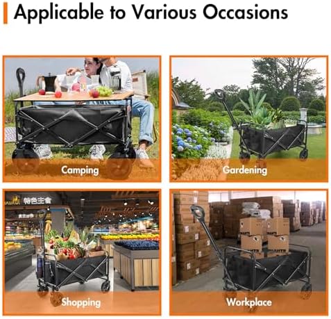 NEOTEC Collapsible-Folding-Wagon - Wagon Cart Heavy Duty Foldable Outdoor Utility with Silent Universal Wheels, Adjustable Handle for Camping