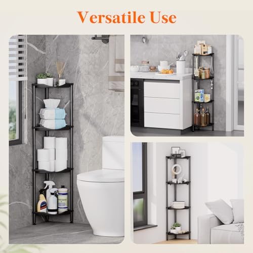 Lifewit 4 Tier Floor Standing Shower Caddy Corner, Plastic Bathroom Organizer Shelf Rack for Storage Shampoo, Body Wash Care, Skincare, Black