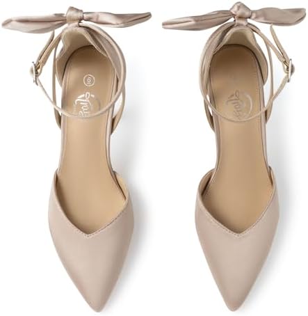 Trary Heels for Women Closed Pointed Toe Heels Women's Pumps Stiletto High Shoes with Bow Knot Comfortable Ankle Strap Office Party Wedding Dress Shoes 3.74" Heel