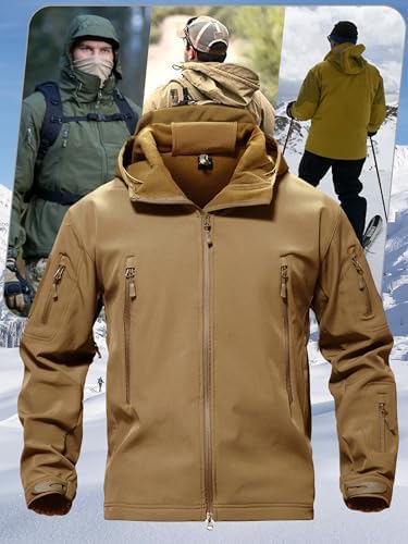 TACVASEN Men's Special Ops Military Tactical Rain Jackets Winter Warm Fleece Softshell Hooded Raincoat Snowboard
