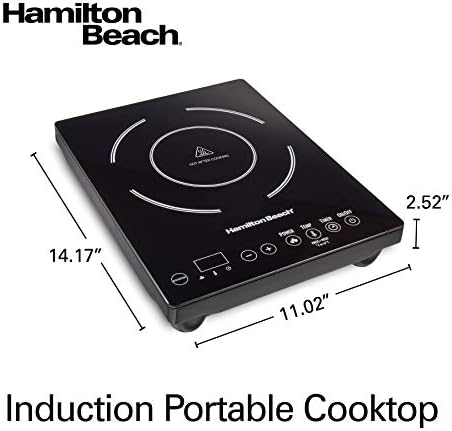 Hamilton Beach Portable Single Induction Cooktop Countertop Burner Hot Plate with Fast Heating Mode, 1800 Watts, 10 Temperature Settings up to 450F, Black (34104)