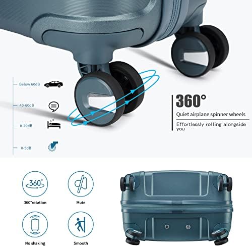 Somago 20" Carry On Luggage and 14" Mini Cosmetic Cases Travel Set Lightweight Polypropylene Suitcase with TSA Lock YKK Zipper Hardside Luggage with Spinner Wheels (2 Piece Set, Ice Blue)