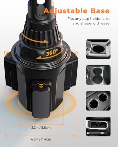 Lorima Cup Phone Holder for Car, Universal Adjustable Cup Holder Phone Mount Compatible with iPhone, Samsung, Huawei, LG, Sony, and Nokia