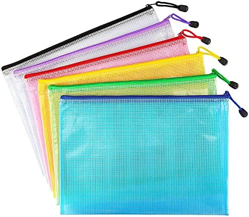 6 Pack Mesh Zipper Pouch Document Bag Waterproof Zip File Folders for School Office Supplies Travel Storage Bags (Colorful)