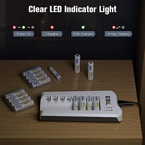 EBL Battery Charger and Rechargeable Batteries AA AAA - 8Bay Smart Charger with 2800mAh AA Rechargeable Batteries(4pcs) & AAA Battery Ni-MH Battery(4pcs) Combo