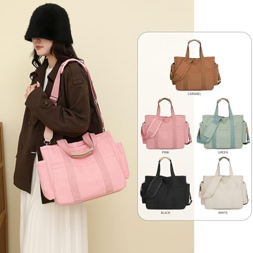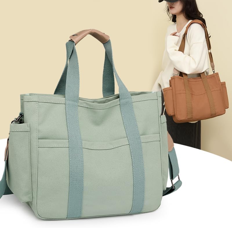 Eagerrich Canvas Crossbody Tote Bag with Multi Pockets for Women Work Large Handbags Shoulder Bag Messenger Bag Travel Purse