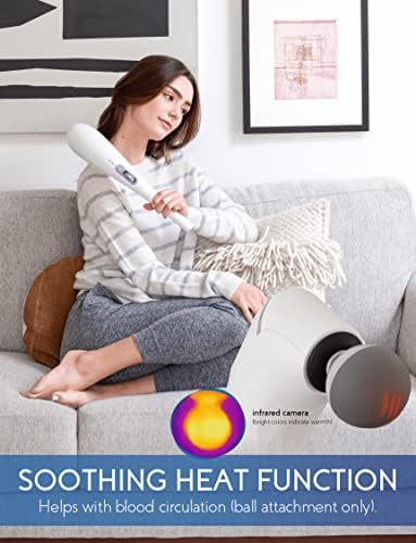 Zyllion Handheld Back and Neck Massager - Cordless Rechargeable Electric Vibrating Deep Tissue Massage with Heat for Athletes, Recovery and Muscle Pain Relief - White (ZMA-27-WT)