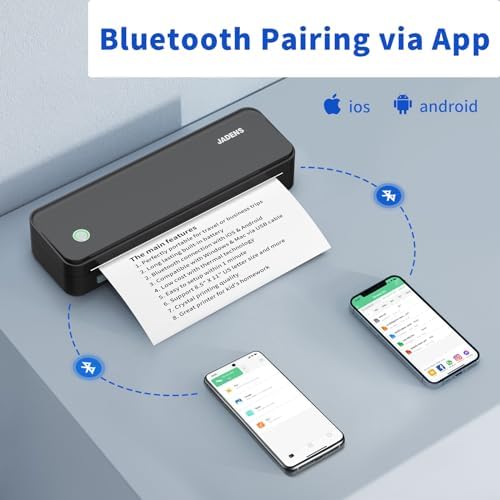 JADENS Bluetooth Thermal Printer, Support 8.5" X 11" US Letter, Portable Printers Wireless for Travel, Inkless Printer Compatible with iOS, Android, Mobile Printer for Home, Office, School