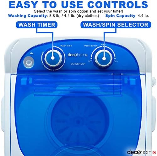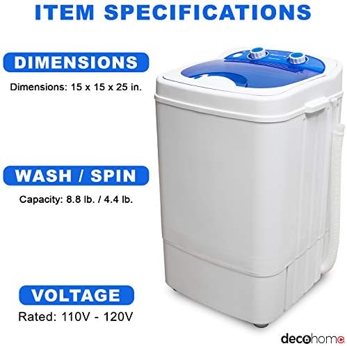 Deco Home Portable Washing Machine for Apartments, Dorms, and Tiny Homes with 8.8 lb Capacity, 250W Power, Wash and Low Agitation Spin Cycle, Includes Drainage Hose, ETL Certified