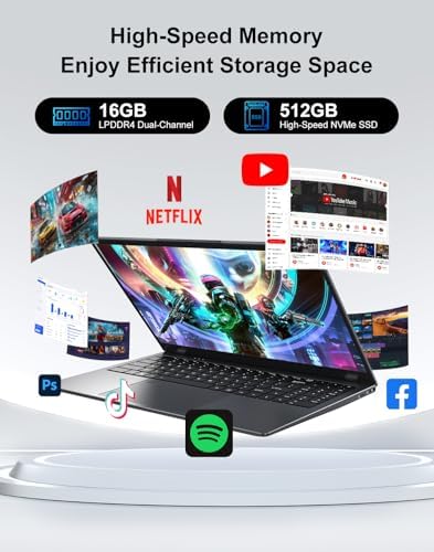 BLUEING 15.6 Inch Laptop-Computer with MS Office, 12th Gen Intel Quad-Core N5095, 16GB RAM 512GB SSD (Expandable to 2TB), Win 11 Laptop, Backlit, Fingerprint, Type-C, HDMI, USB3.2, BT5.0, WiFi 5G