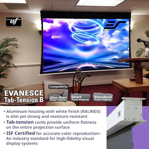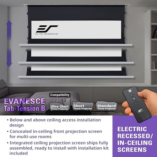 Elite Screens Evanesce Tab-Tension B, 120-inch 16:9, 4K \/ 8K HD, Recessed in-Ceiling Electric Tab Tensioned Projector Screen, Matte White Projection Screen Surface Programmed Remote Kit, ETB120HW3-E8