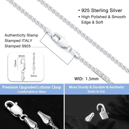 Jewlpire Italian 1.5mm Rope Chain 925 Sterling Silver Chain Necklace for Women Men, 14K Gold Chain for Women Sturdy Women's Chain Necklaces, 16 18 20 22 24 26 Inch