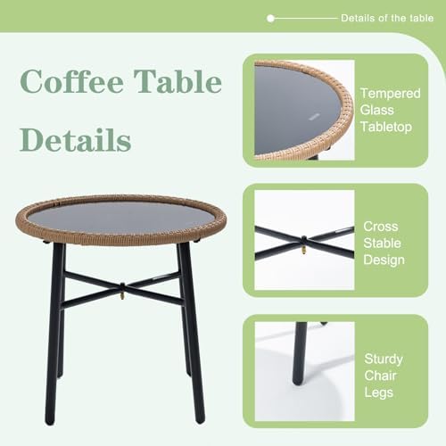 Outdoor Patio Rattan Rocking Chairs Furniture Set, Indoor High Back Rocking Chairs Set of 3, Balcony Chairs Set with Glass Coffee Table and White Cushions, Suitable for Balcony, Front Door, Porch
