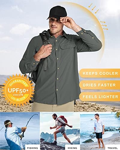 33,000ft Men's Long Sleeve Sun Protection Shirt UPF 50+ UV Quick Dry Cooling Fishing Shirts for Travel Safari Camping Hiking