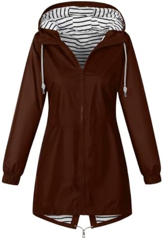 Rain Jacket Waterproof Windbreaker Lightweight Plus Size Rain Jackets with Pockets Striped Lined Raincoats with Hood