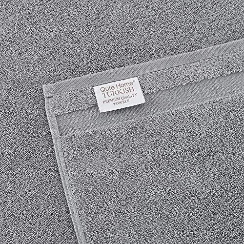 Qute Home 4-Piece Washcloths Towels Set, 100% Turkish Cotton Premium Quality Towels for Bathroom, Quick Dry Soft and Absorbent Turkish Towel, Set Includes 4 Wash Cloths (Grey)