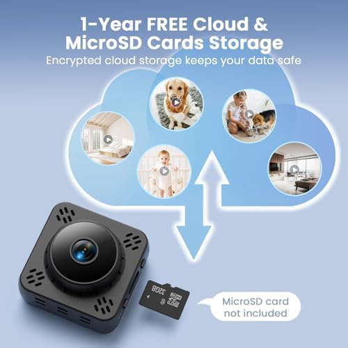 Mini Camera, 4K HD WiFi Nanny Cam - Surveillance Camera with 1-Year Cloud Storage, Motion Detection & Night Vision, No WiFi Needed Cam with Magnetic Mount for Pet\/Baby\/Nanny