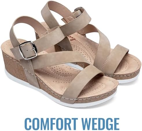 Jeossy Women's Platform Wedge Sandals 835 Comfortable Open Toe Ankle Strap Summer Walking Sandals with Buckle