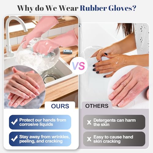 BSRBZJ Rubber Kitchen Dishwashing Gloves - 4 Pairs Reusable Household Cleaning Gloves, Flexible and Durable & Non-slip Cleaning Gloves, Great for Kitchen, Bathroom, Laundry (Pink+Green+Blue+Grey)