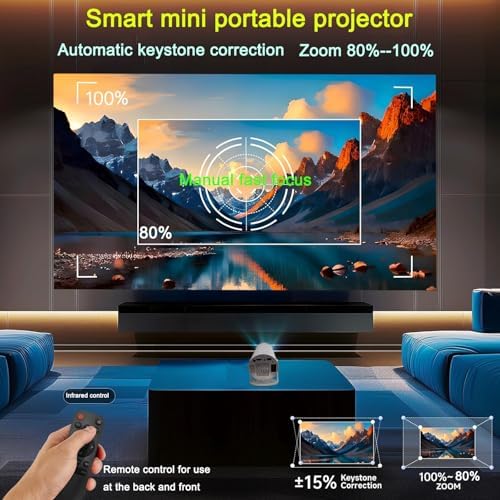 HY300 Projector with WIFI6 and Bluetooth, 4K 1080P Support with Android TV 11.0, Mini Portable Projector 180° Rotatable Movie Projector ,Auto Keystone Compatible for Laptop, PC, Smartphone