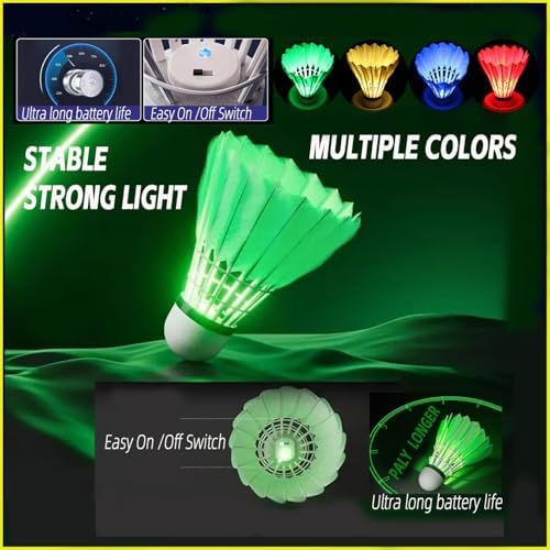 ZHENAN LED Badminton Shuttlecocks,Colourful Lighting Badminton Birdies,Plastic Nylon Shuttlecock,Goose Feather Glow in The Dark Birdie Balls for Outdoor Indoor Sport Activities (4\/5\/6 PCS)