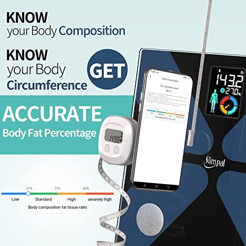Slimpal Body Fat Measuring Tape and Smart Scale for Body Weight and Fat with APP Digital Bathroom Scale for Weight Loss, Body Composition and Circumference Analyzer