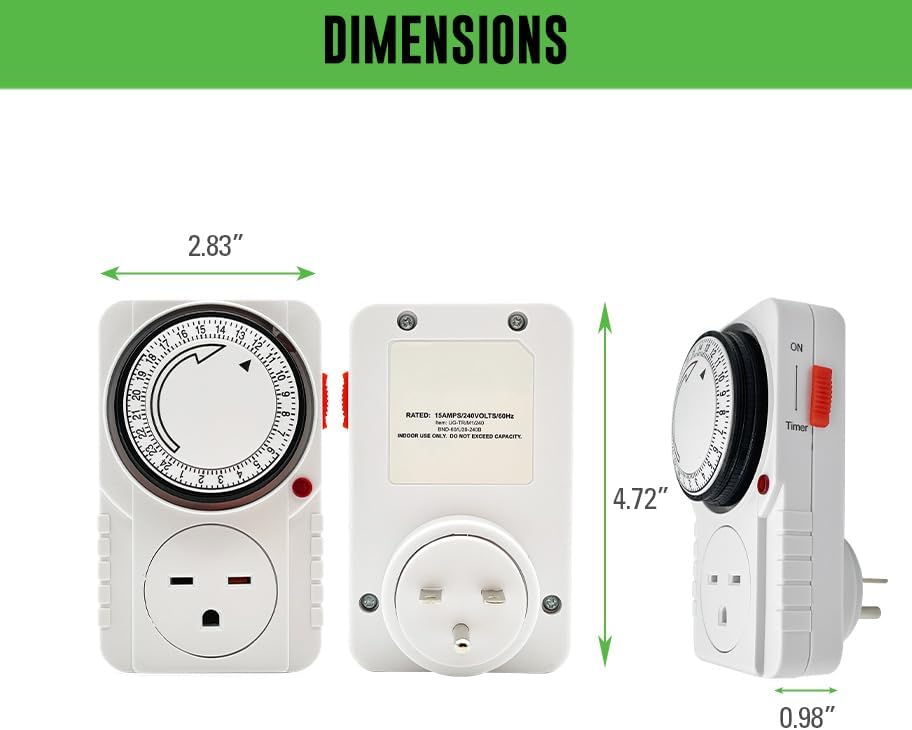 Generic 240V Mechanical Timer with Dual Outlet for Aquarium, Grow Light, Hydroponics, Indoor Lighting, Home Appliances, White, TM-M1\/240