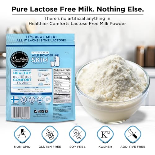 Healthier Comforts Lactose Free Skim Milk Powder High Protein, Fat Free, Non-GMO, rBST Hormone Free, Kosher, Gluten Free, No Fillers Baking, Coffee Creamer, Shakes Makes 14 cups (7 oz) (7 oz)